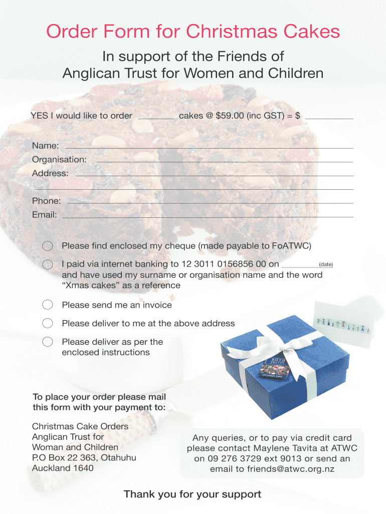 Get the free Order Form for Christmas Cakes - Anglican Trust for Women & Children - atwc org