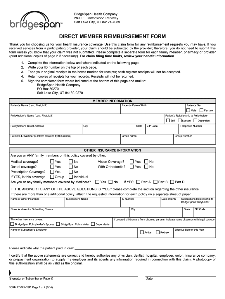 Salt Lake City, UT 841217089DIRECT MEMBER REIMBURSEMENT FORM