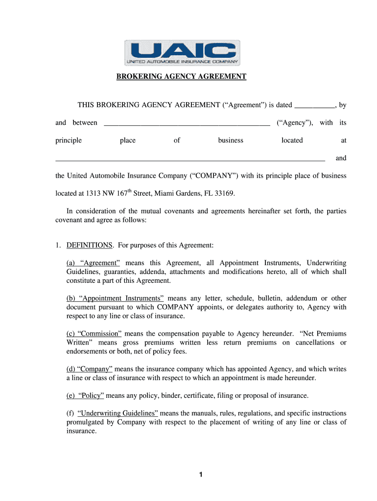 Get the free BROKERING AGENT AGREEMENT