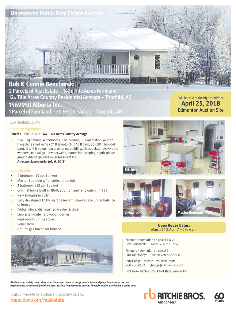 Unreserved Public Real Estate Auction Bob & Connie Bencharski2 Parcels of Real Estate 147 Title Acres Farmland 12 Title Acres Country Residential Acreage Thyroid, AB Will be sold to the highest bidder1