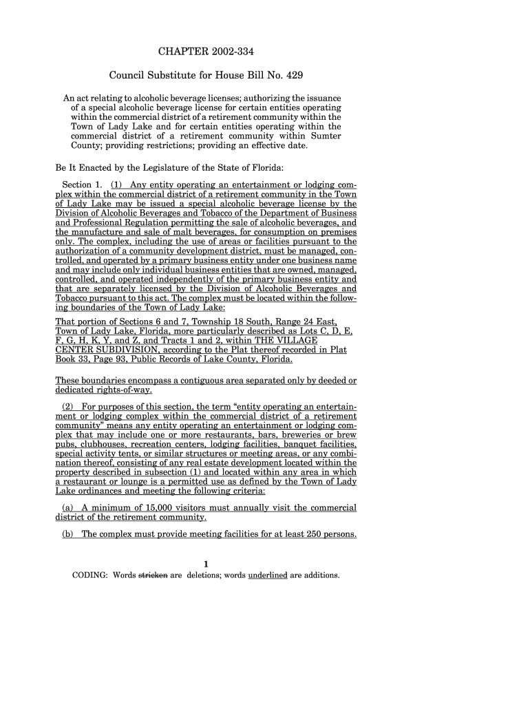Get the free An act relating to alcoholic beverage licenses; authorizing the issuance - laws flrules