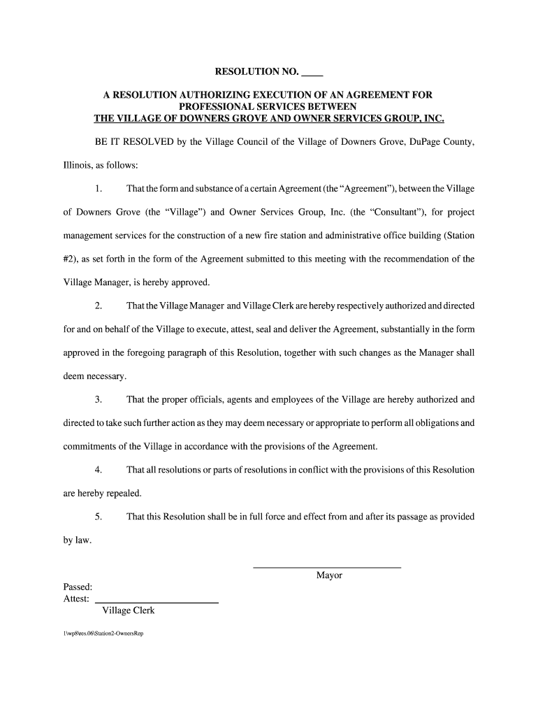 Get the free A RESOLUTION AUTHORIZING EXECUTION OF AN AGREEMENT FOR