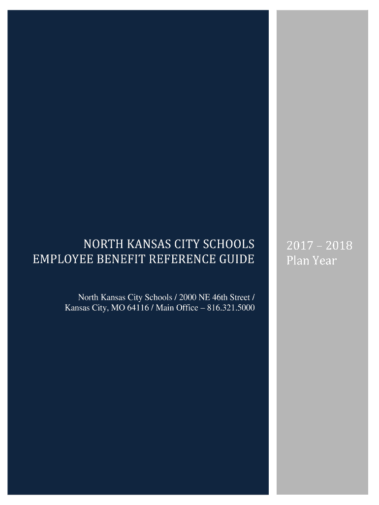 NORTH KANSAS CITY SCHOOLS EMPLOYEE BENEFIT REFERENCE GUIDE North Kansas City Schools / 2000 NE 46th Street / Kansas City, MO 64116 / Main Office 816.321.500002017 2018 Plan YearImportaNorth Kansas