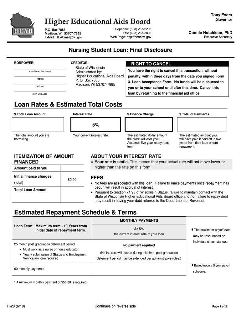 Get the free Nursing Student Loan: Final Disclosure - heab wisconsin