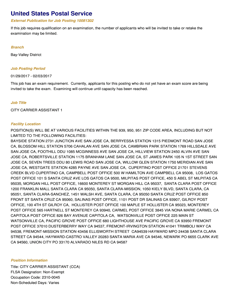 United States Postal Service External Publication for Job Posting 10081302 If this job requires qualification on an examination, the number of applicants who will be invited to take or retake the