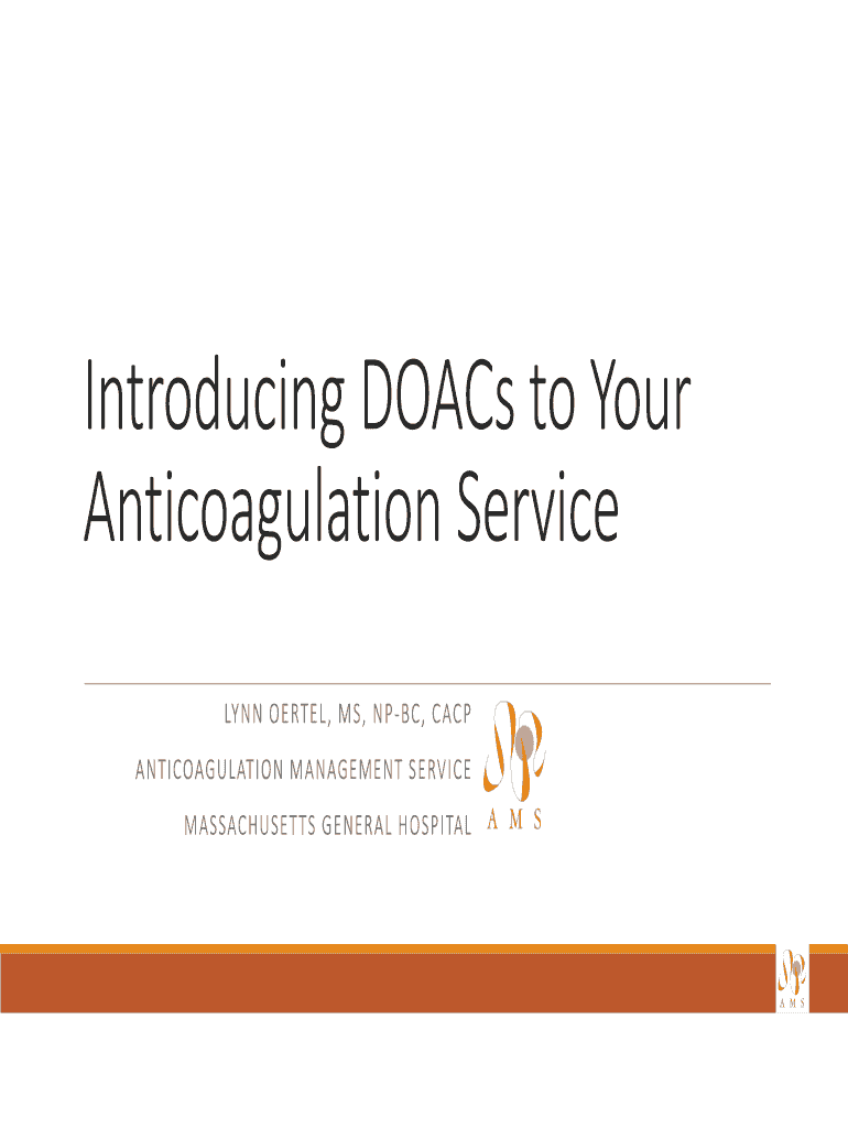 Introducing Docs to Your Anticoagulation Service LY IN O E RTE L, M S, N P B C, C AC P A N TI COAGULATE ON M A NAG EME NT S E RVI C E M A S SAC HUS E T TS G E NER AL H O S P I Challenge at the start.