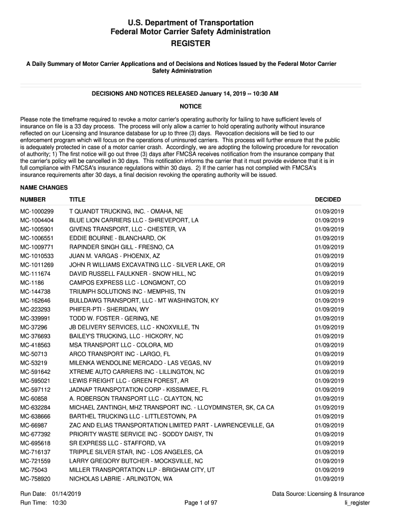 Get the free Notices Search - Federal Motor Carrier Safety Administration - US ...