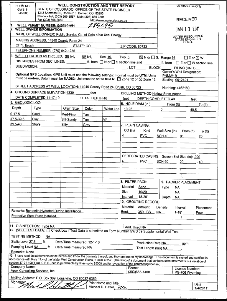 STATE OF COLORADO OFFICE OF THE STATE ENGINEERFORM NO
