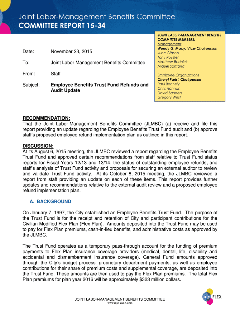 Joint LaborManagement Benefits Committee REPORT 1534Date:November 23, 2015To:Joint Labor Management Benefits CommitteeFrom:StaffSubject:Employee Benefits Trust Fund Refunds and