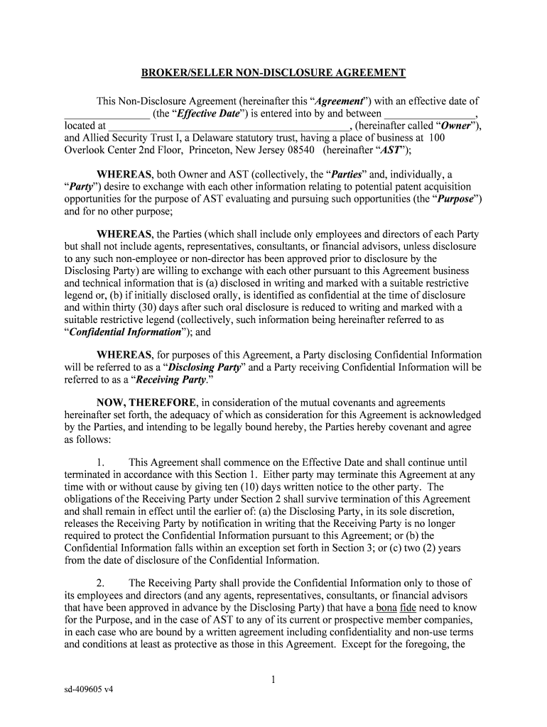 BROKER/SELLER NONDISCLOSURE AGREEMENT This Nondisclosure Agreement (hereinafter this Agreement) with an effective date of (the Effective Date) is entered into by and between, located at, (hereinafter