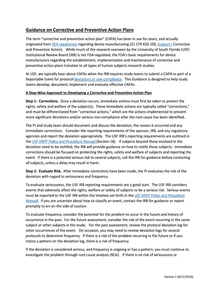 Get the free Guidance on Corrective and Preventive Action Plans - arc research usf