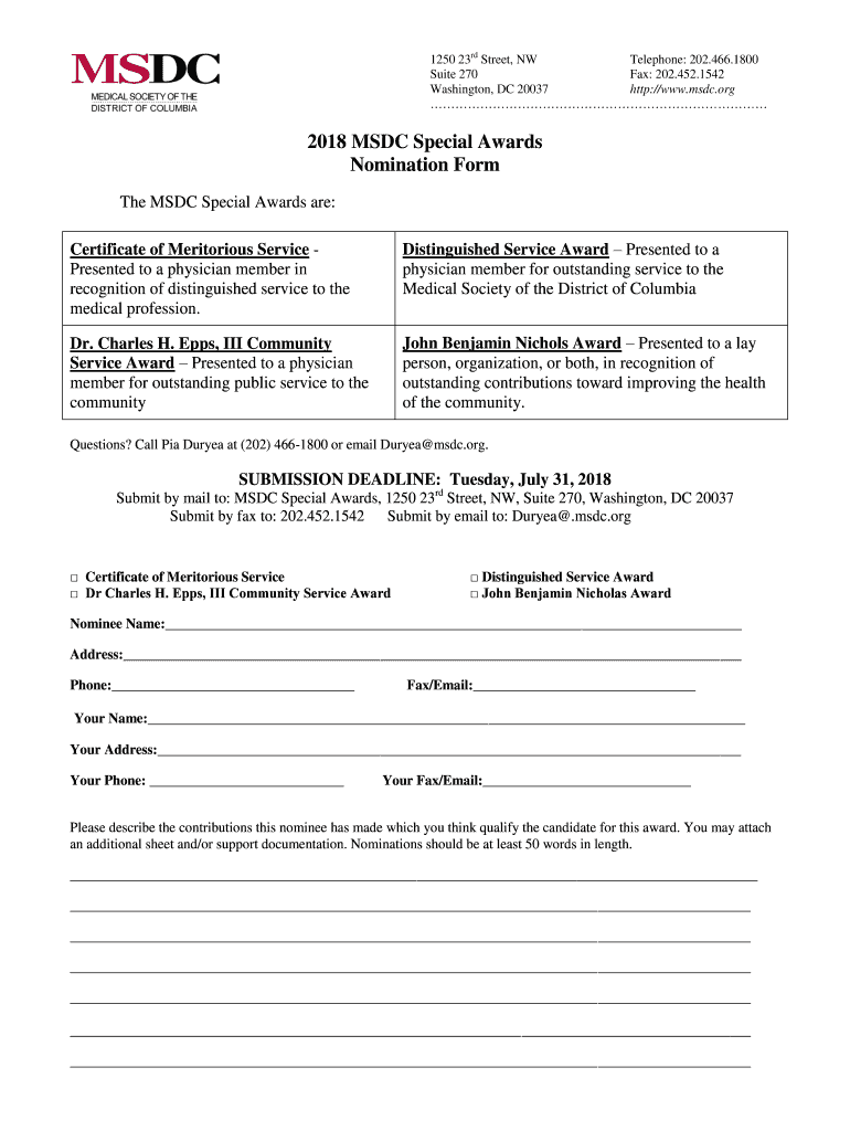 Individuals who are interested in applying for the special awards offered by the organization or institution will need to fill out form msdc special awards.