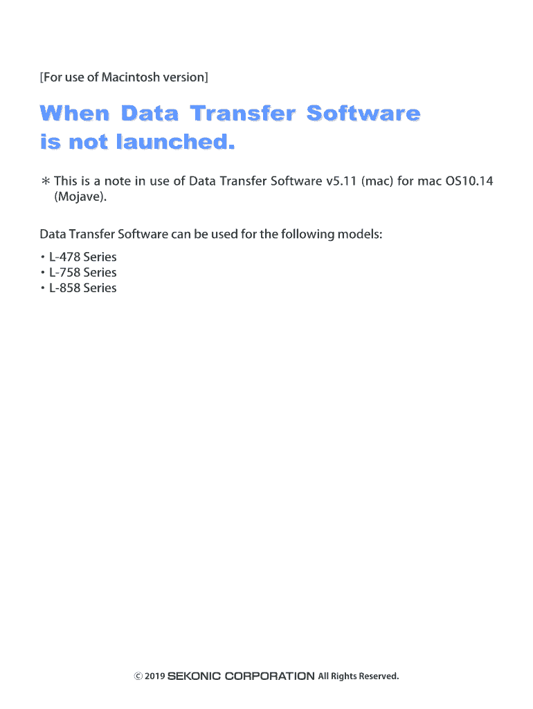 For use of Macintosh version When Data Transfer Software is not launched. This is a note in use of Data Transfer Software v5.11 (mac) for mac OS10.14 (Mojave). Data Transfer Software can be used for