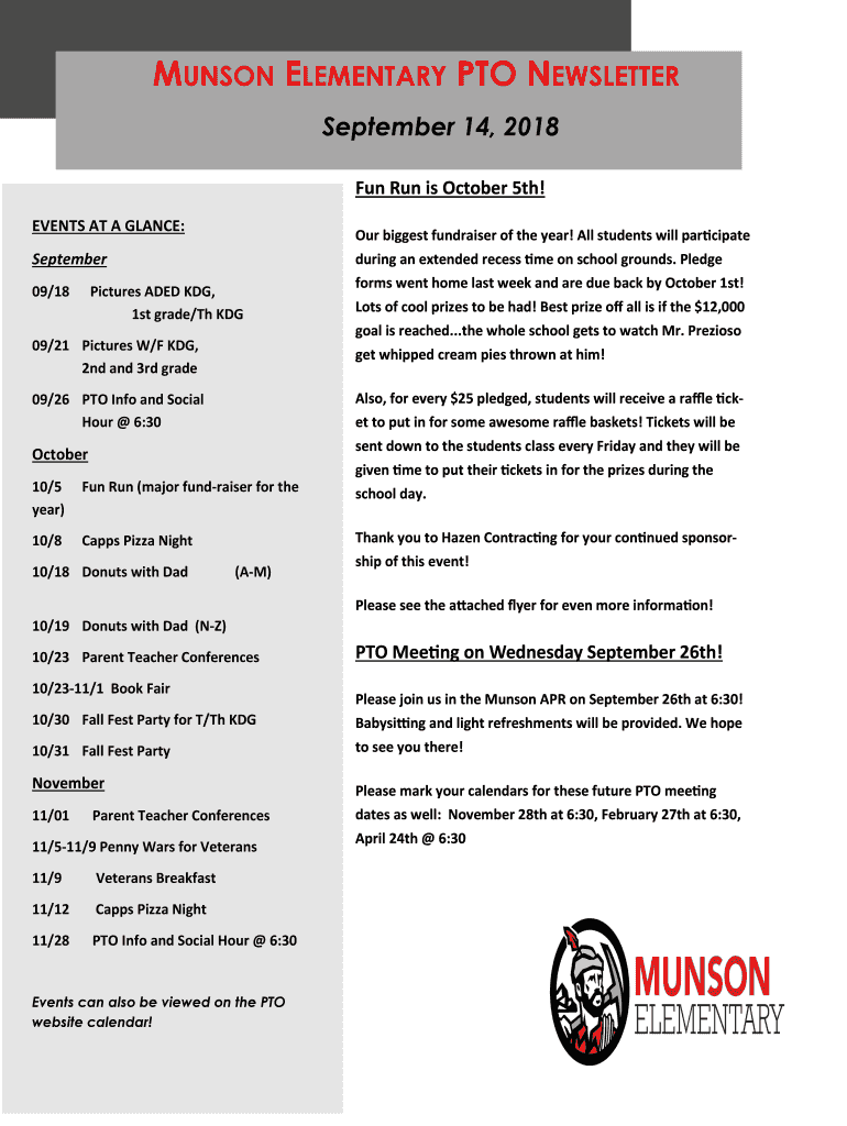 EVENTS AT A GLANCE:Our biggest fundraiser of the year! All students will participate September