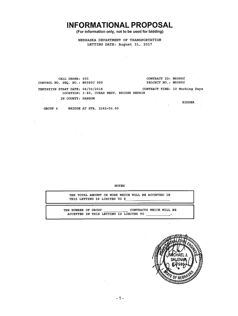 Project No. M6080CNOTICE TO ALL BIDDERS To report bid rigging activities, call: 18004249071 The U.S. Department of Transportation (DOT) operates the above toll-free hotline Monday through Friday,
