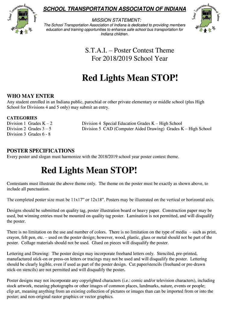 SCHOOL TRANSPORTATION ASSOCIATION OF INDIANA MISSION STATEMENT: The School Transportation Association of Indiana is dedicated to providing members education and training opportunities to enhance safe