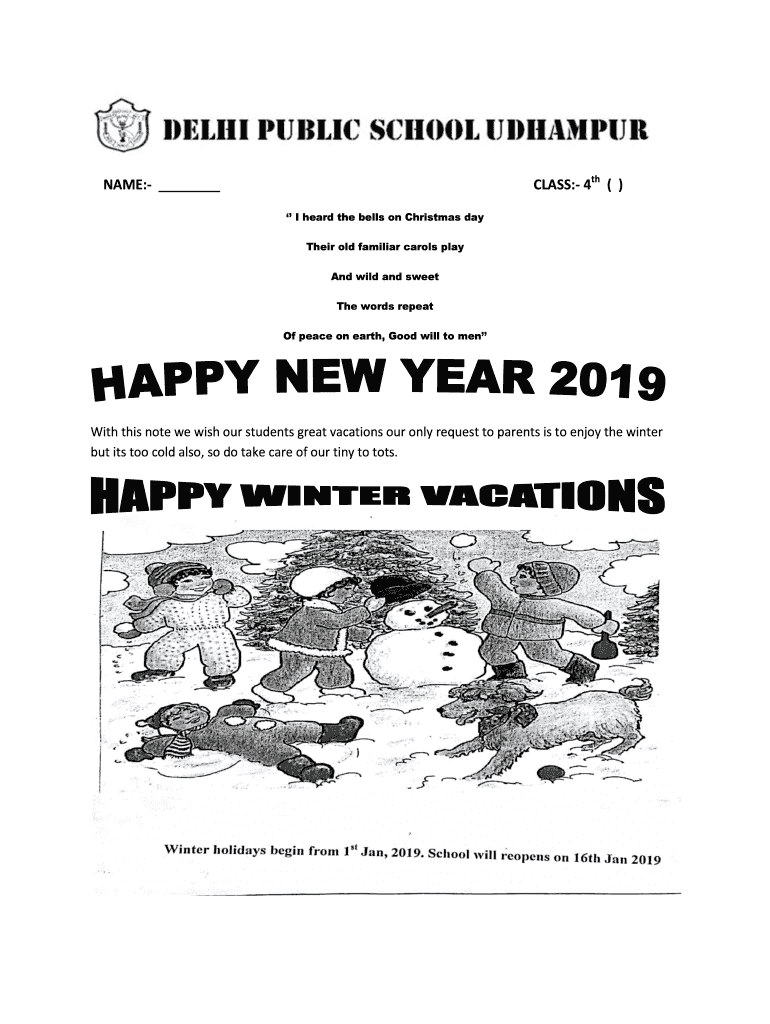 CLASS: 4th ()NAME: I heard the bells on Christmas day Their old familiar carols play And wild and sweet The words repeat Of peace on earth, Good will to zenith this note we wish our students great