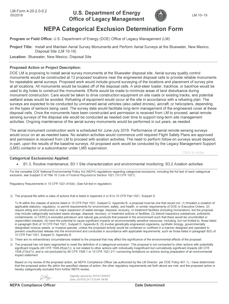Office of Legacy Management 1019NEPA Categorical Exclusion Determination Form