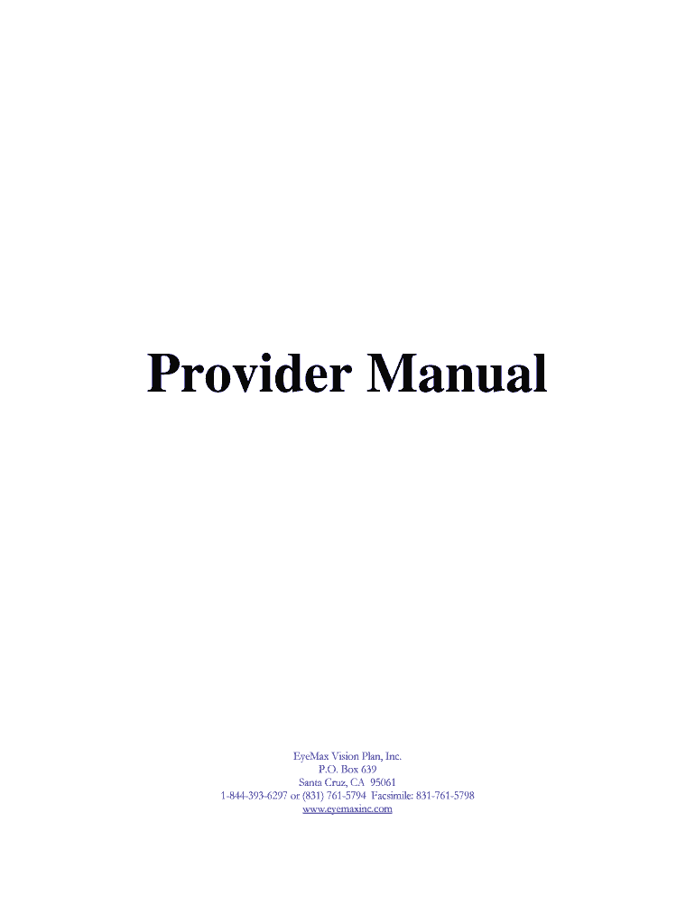 Eyemax provider manual must include information on policies, procedures, service offerings, and compliance requirements.