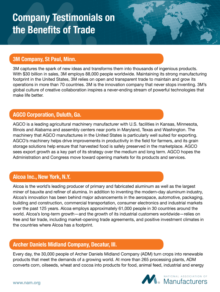 Company Testimonials on the Benefits of Trade 3M Company, St Paul, Minn. 3M captures the spark of new ideas and transforms them into thousands of ingenious products. With $30 billion in sales, 3M
