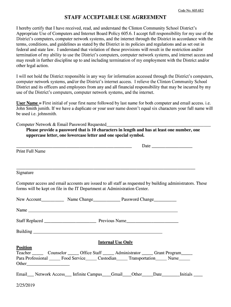 Code No. 605.6E2STAFF ACCEPTABLE USE AGREEMENT