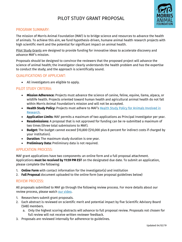 Get the free pilot study grant proposal - Morris Animal Foundation