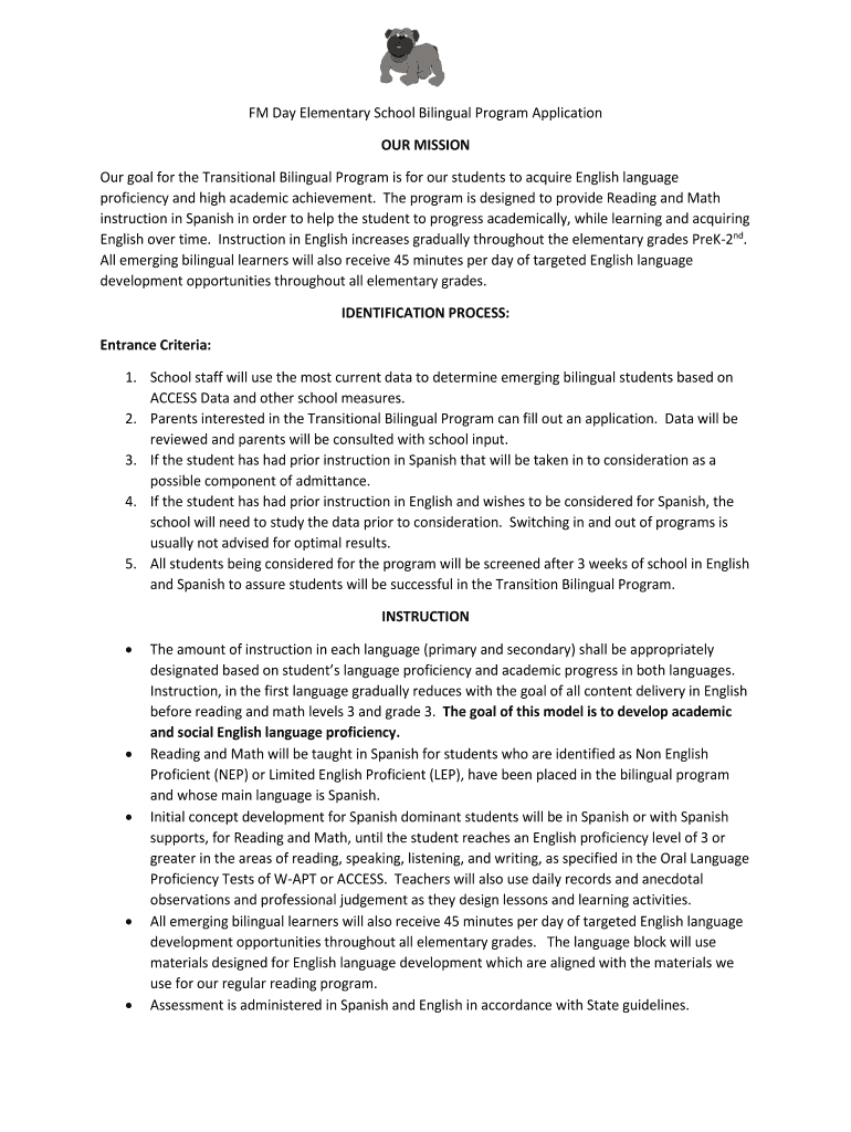 Get the free FM Day Elementary School Bilingual Program Application OUR ...