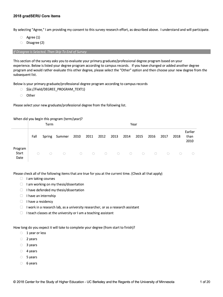 2018 graders Core items By selecting “Agree, I am providing my consent to this survey research effort, as described above. I understand and will participate.o agree (1) Disagree (2)If Disagree Is