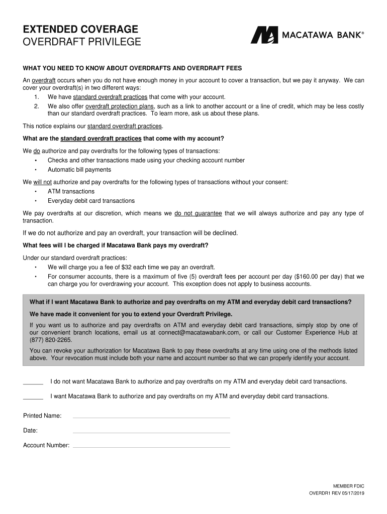 Get the free EXTENDED COVERAGE OVERDRAFT PRIVILEGE
