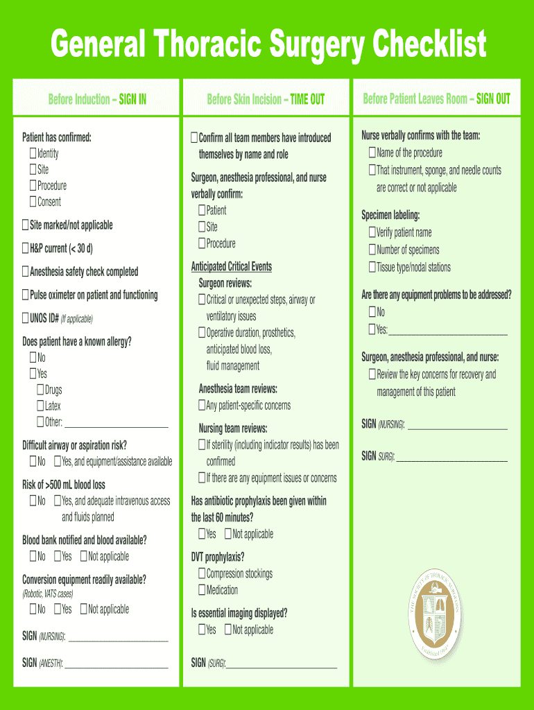 How to fill out general thoracic surgery checklist