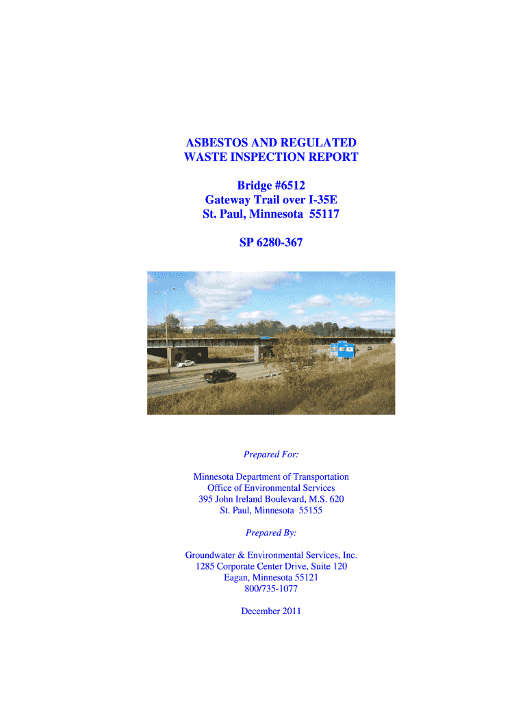 ASBESTOS AND REGULATED WASTE INSPECTION REPORT Bridge #6512 Gateway Trail over I35E St. Paul, Minnesota 55117 SP 6280367Prepared For: Minnesota Department of Transportation Office of Environmental