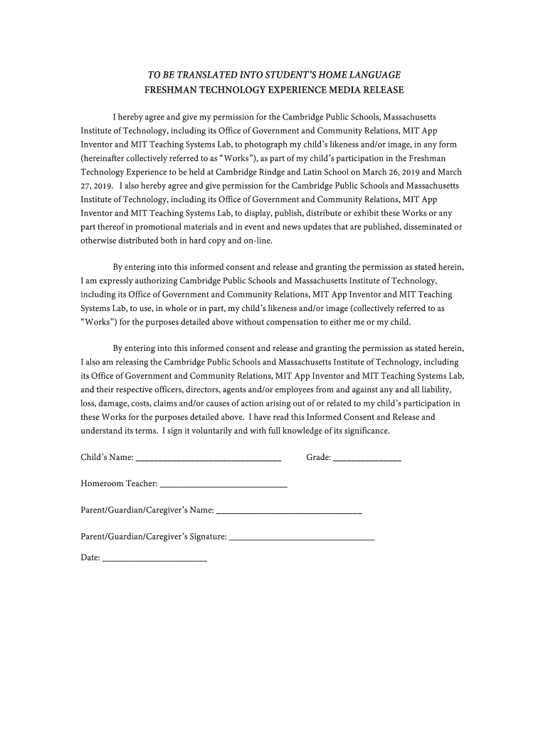 I hereby agree and give my permission for the Cambridge Public Schools, Massachusetts