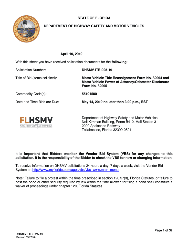 DEPARTMENT OF HIGHWAY SAFETY AND MOTOR VEHICLES April 10, 2019,