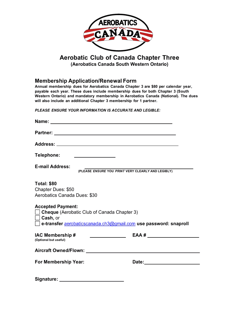 Get the free FILLABLE Aerobatic Club of Canada Ch3 Membership Form.docx