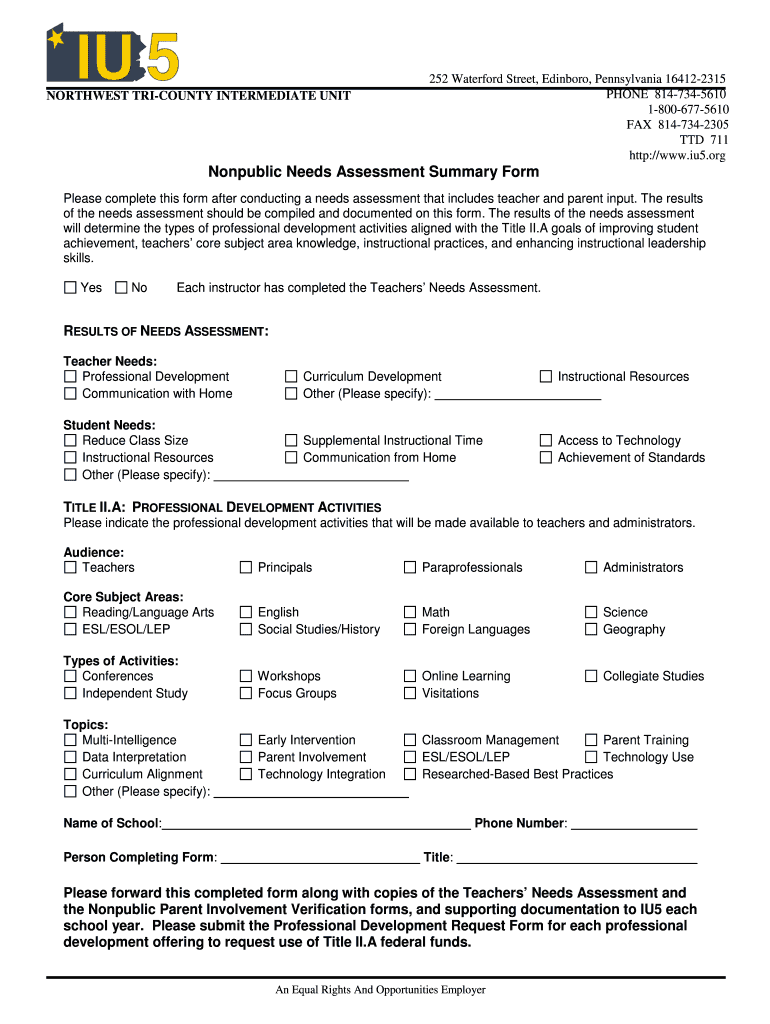 How to fill out nonpublic needs assessment summary