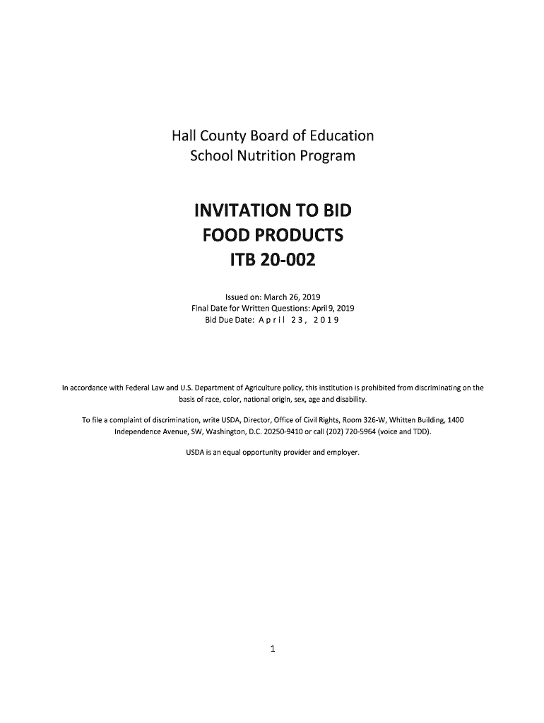 School Nutrition ProgramINVITATION TO BID
