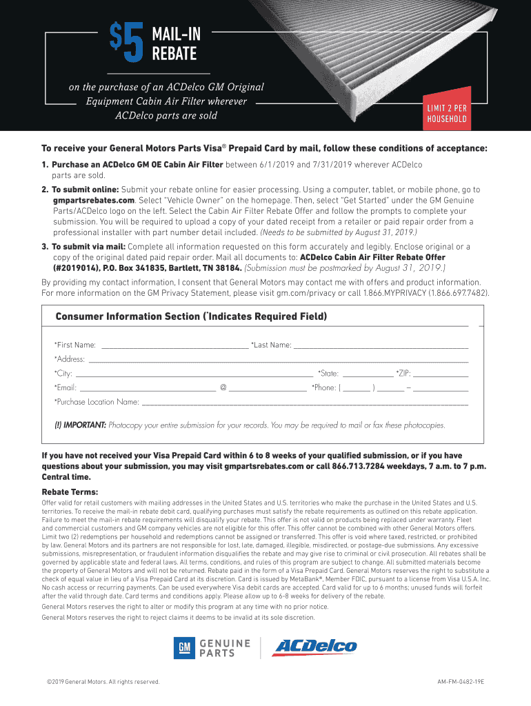 Household receive your General Motors Parts Visa Prepaid Card by mail,