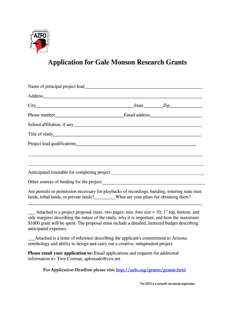 Get the free Application for Gale Monson Research Grants - azfo.org