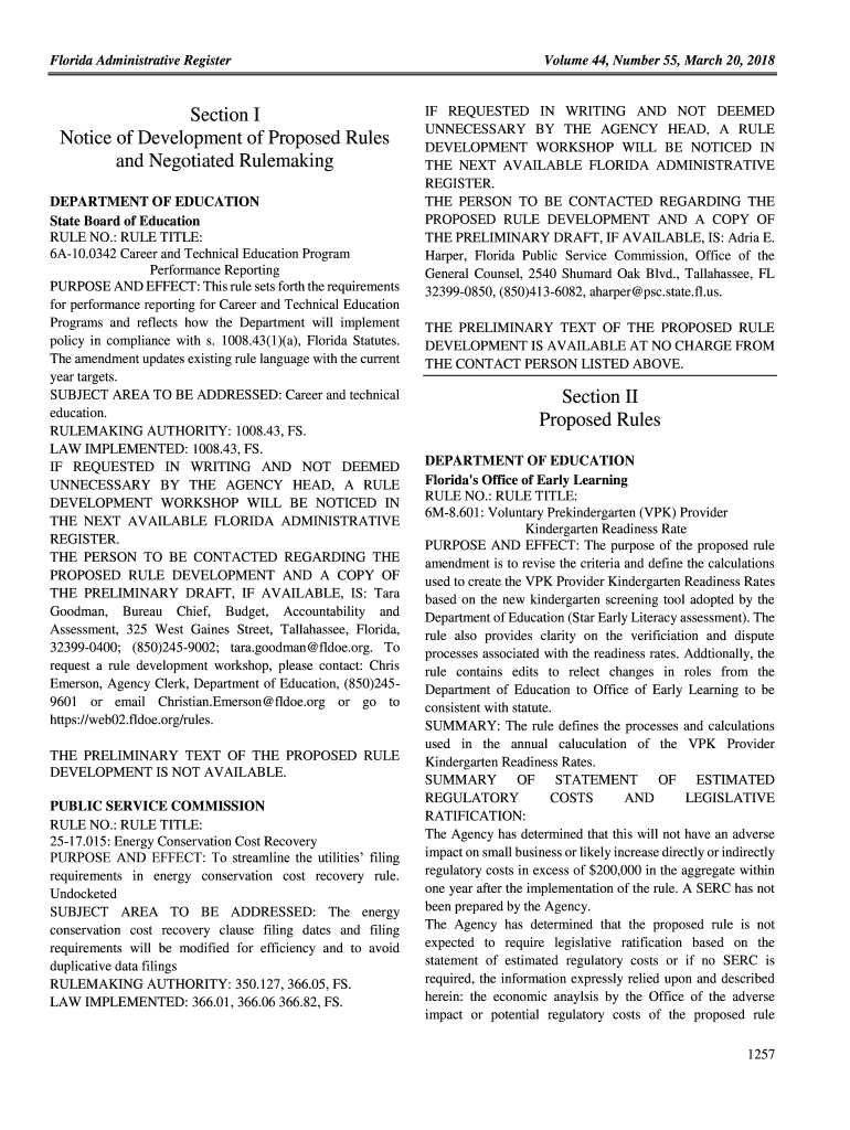 Florida Administrative RegisterSection I