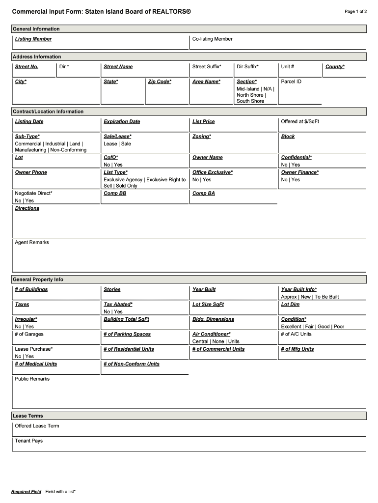 Get the free Commercial Input Form: Staten Island Board of REALTORS
