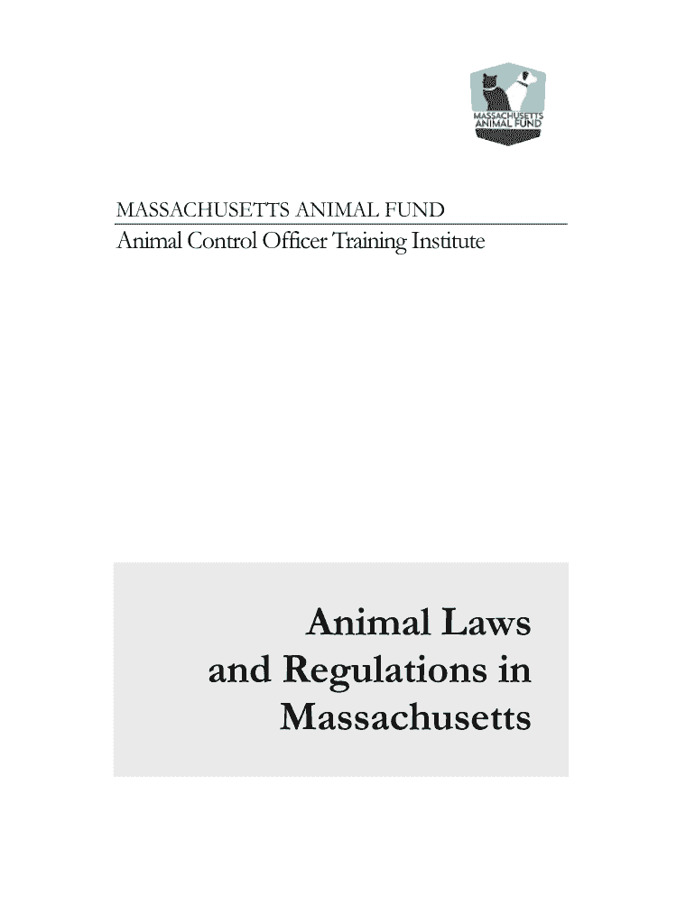 MASSACHUSETTS ANIMAL FUNDAnimal Control Officer Training InstituteAnimal Laws and Regulations in MassachusettsMASSACHUSETTS ANIMAL FUNDANIMAL LAWS AND REGULATIONS IN MASSACHUSETTSMassachusetts Animal