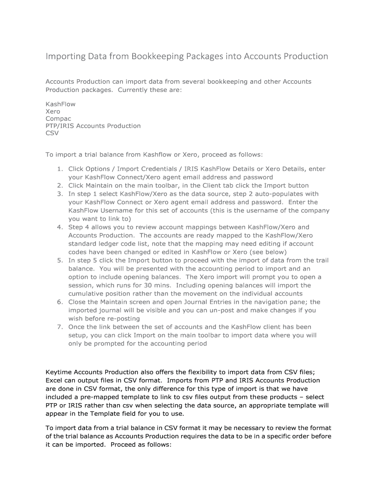 Importing Data from Bookkeeping Packages into Accounts Production can import data from some bookkeeping and other Accounts