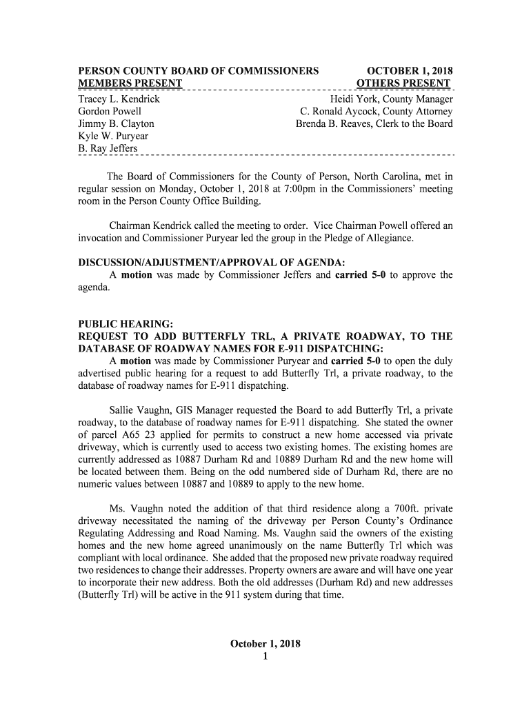PERSON COUNTY BOARD OF COMMISSIONERS