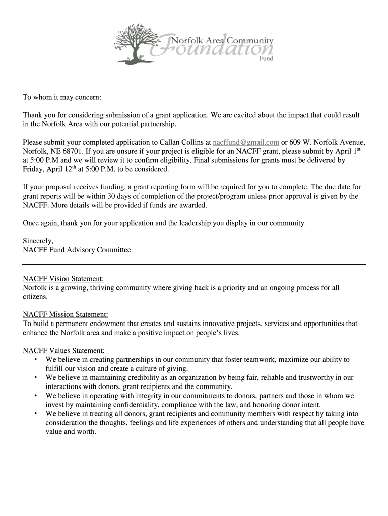 Get the free Thank you for considering submission of a grant application