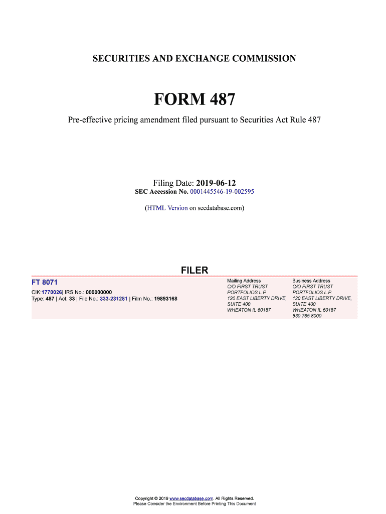 Get the free FT 8071 Form 487 Filed 2019-06-12. Accession Number