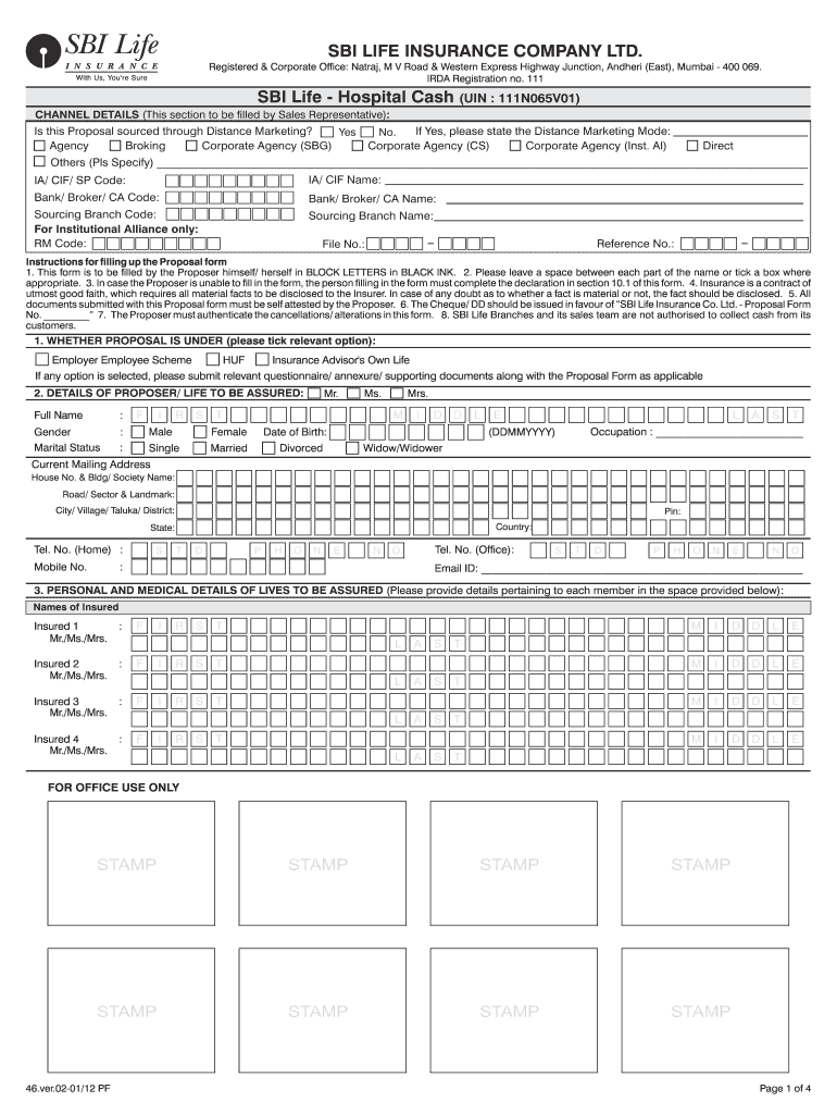 Get the free SBI Life Hospital Cash Proposal Form