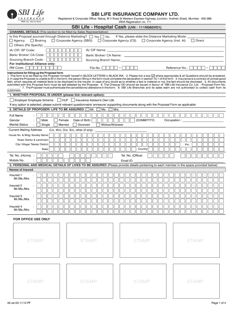 How to Fill Out the SBI Life Hospital Cash Proposal Form