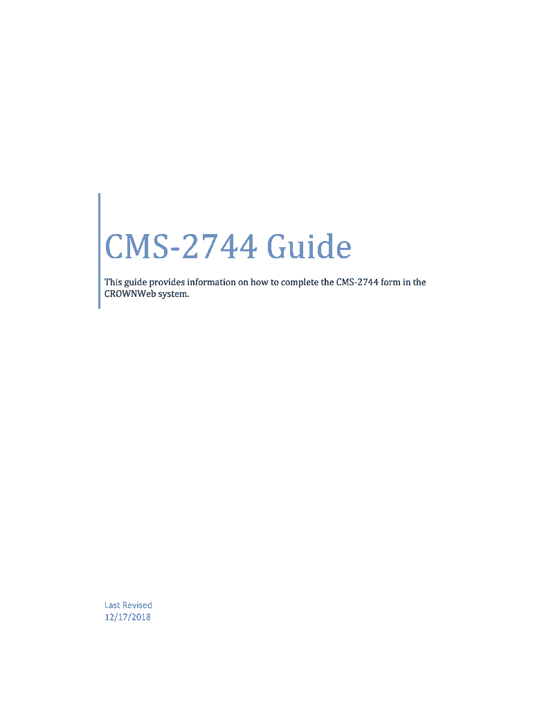 Get the free CMS-2744 Guide. This guide provides information on how to complete the CMS-2744 form...