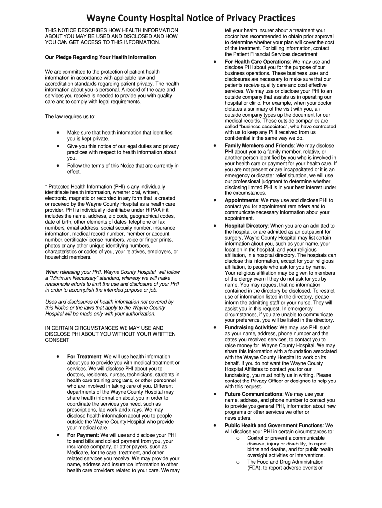 Get the free Wayne County Hospital Notice of Privacy Practices