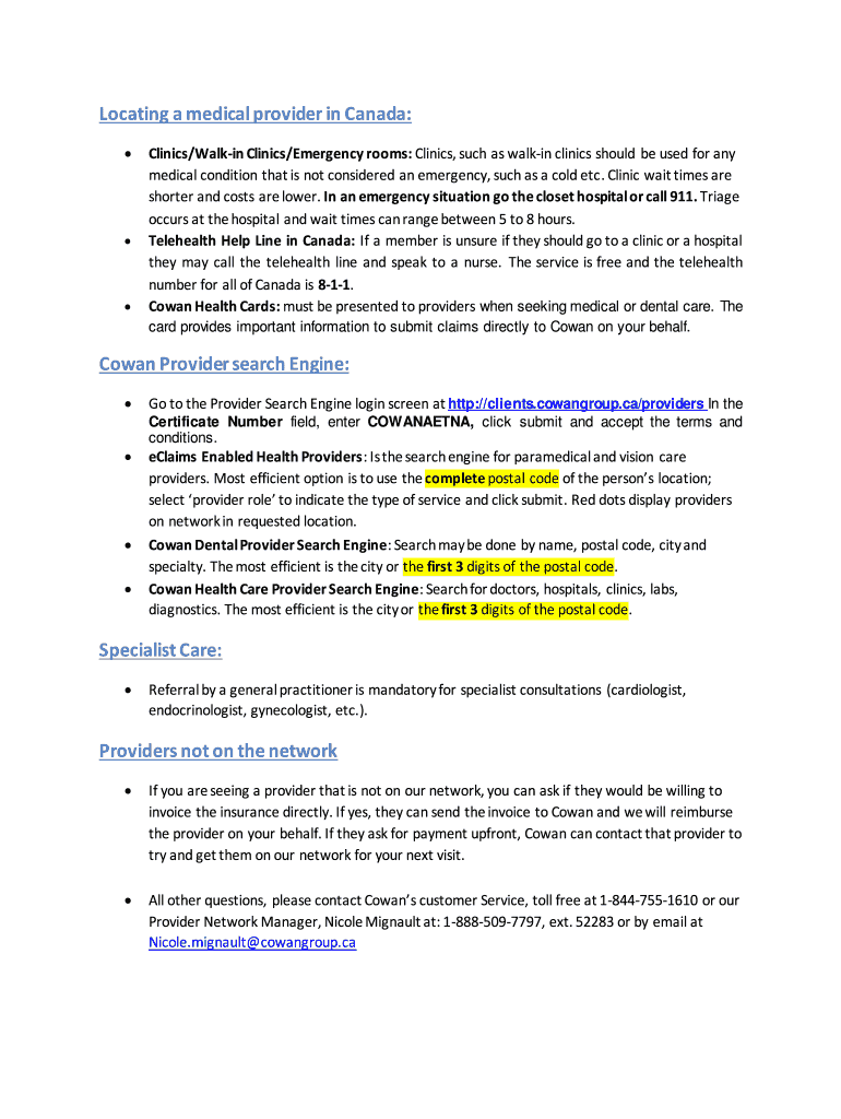 Clinics/Walking Clinics/Emergency rooms: Clinics, such as walking clinics should be used for any